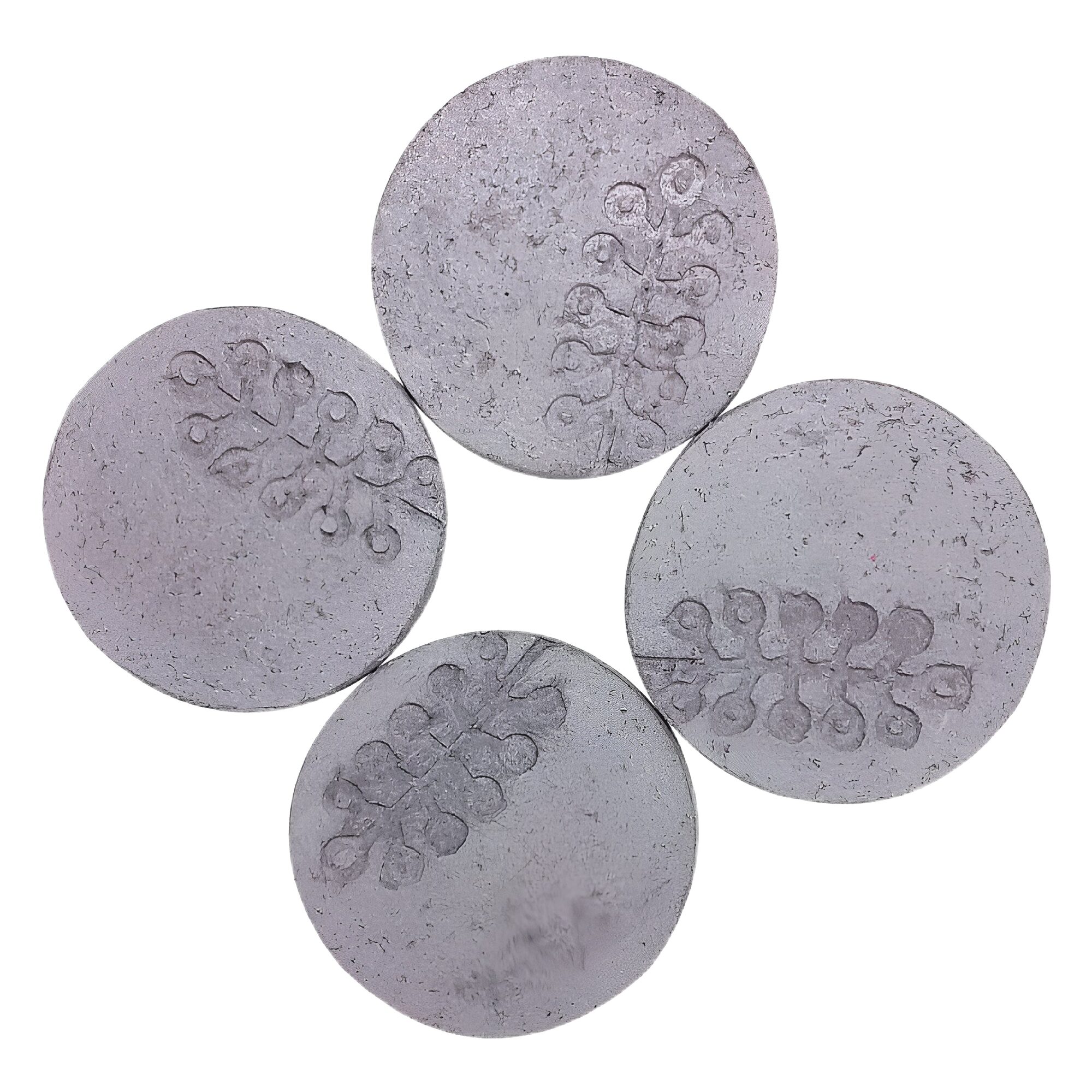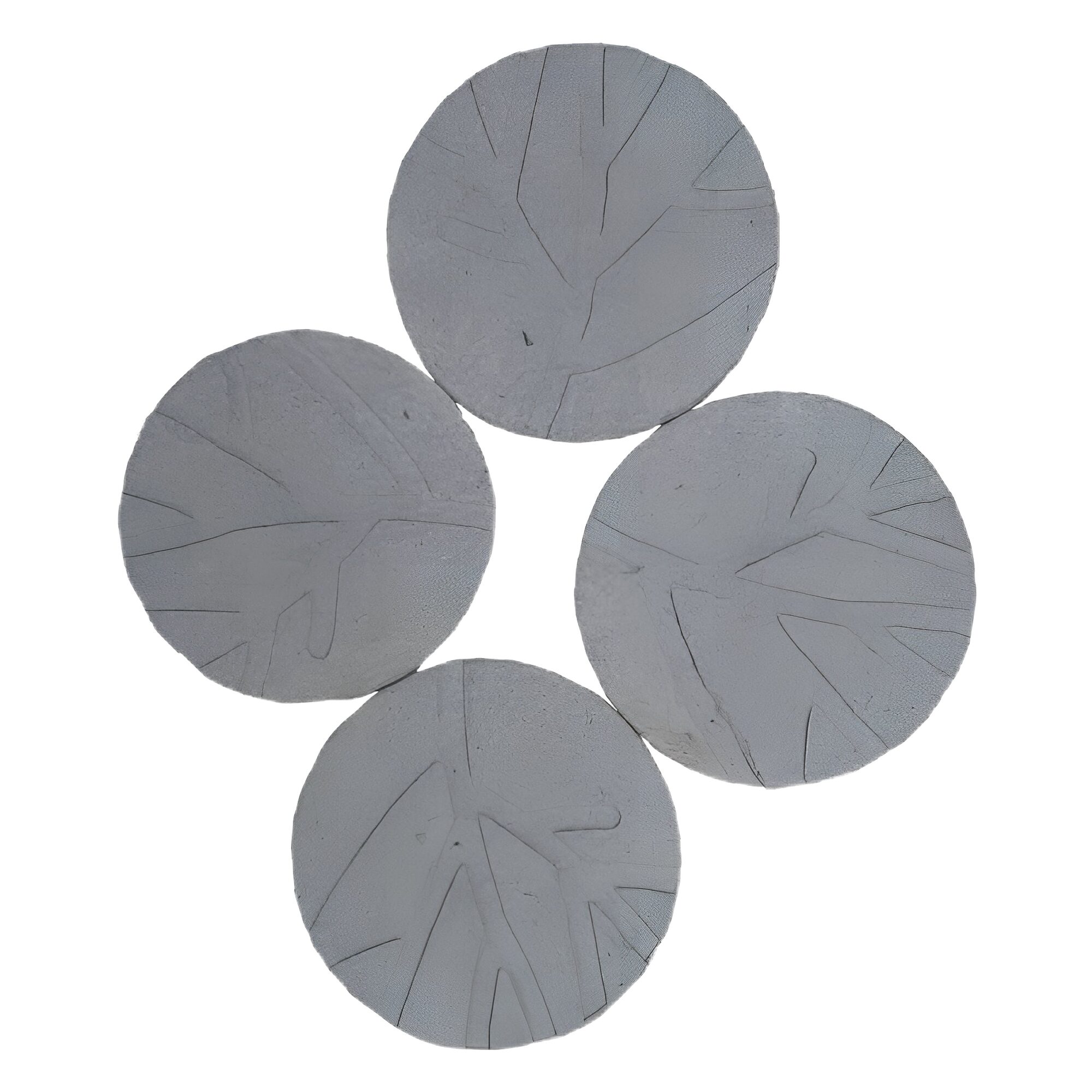 Each light grey coasters with tree impression.