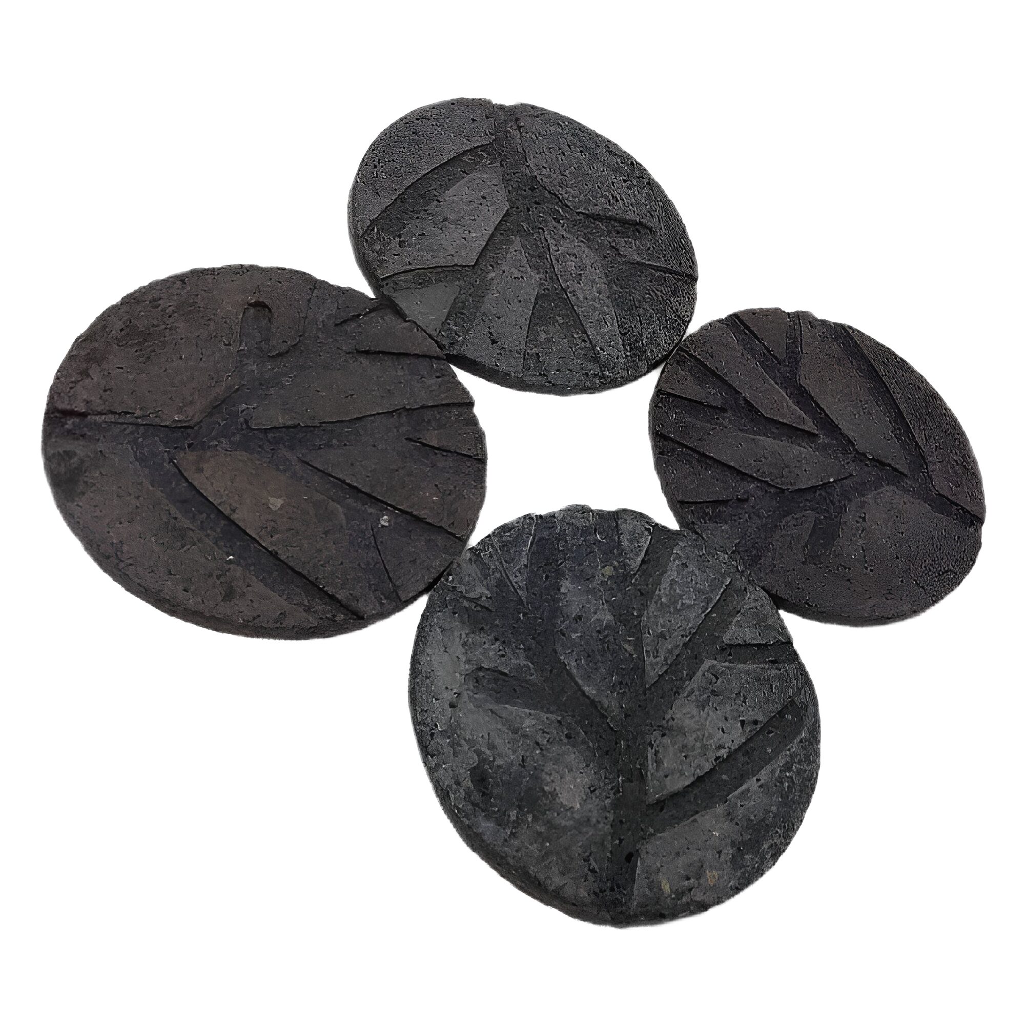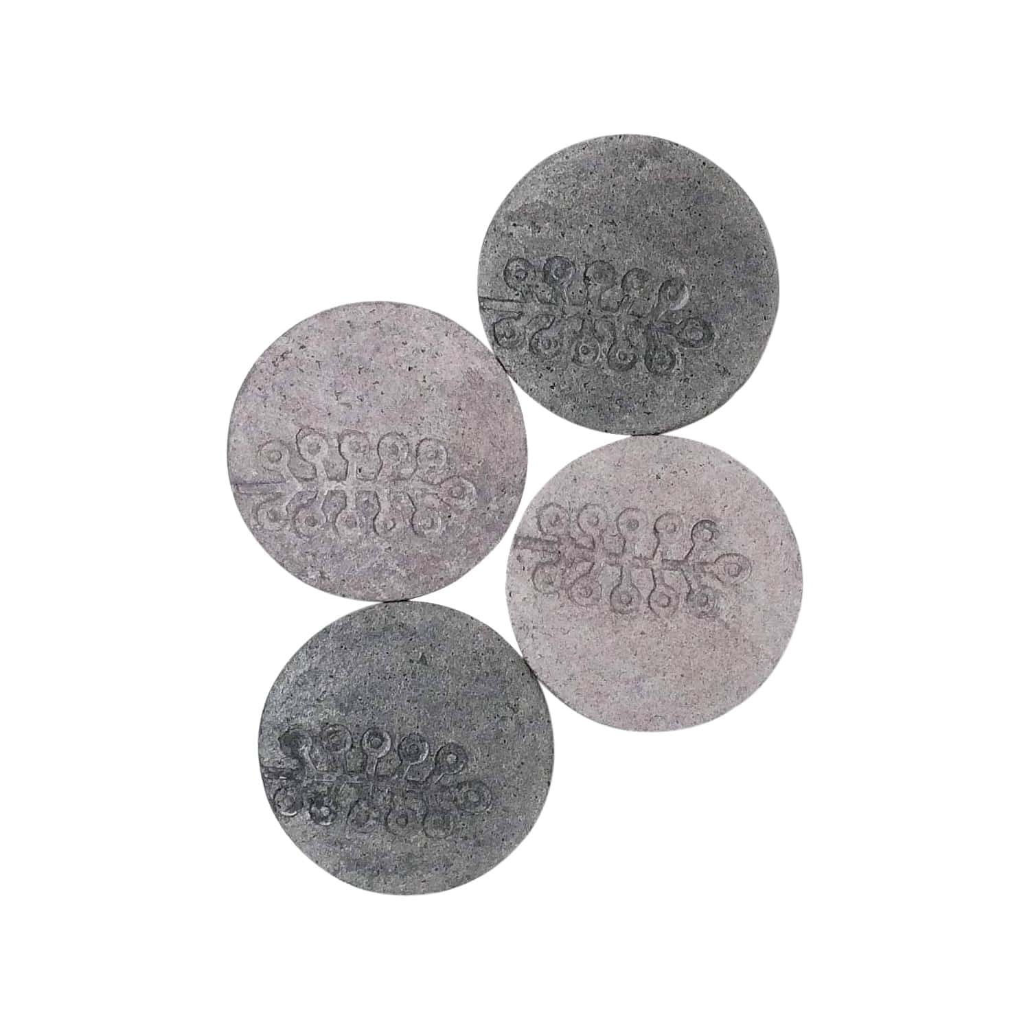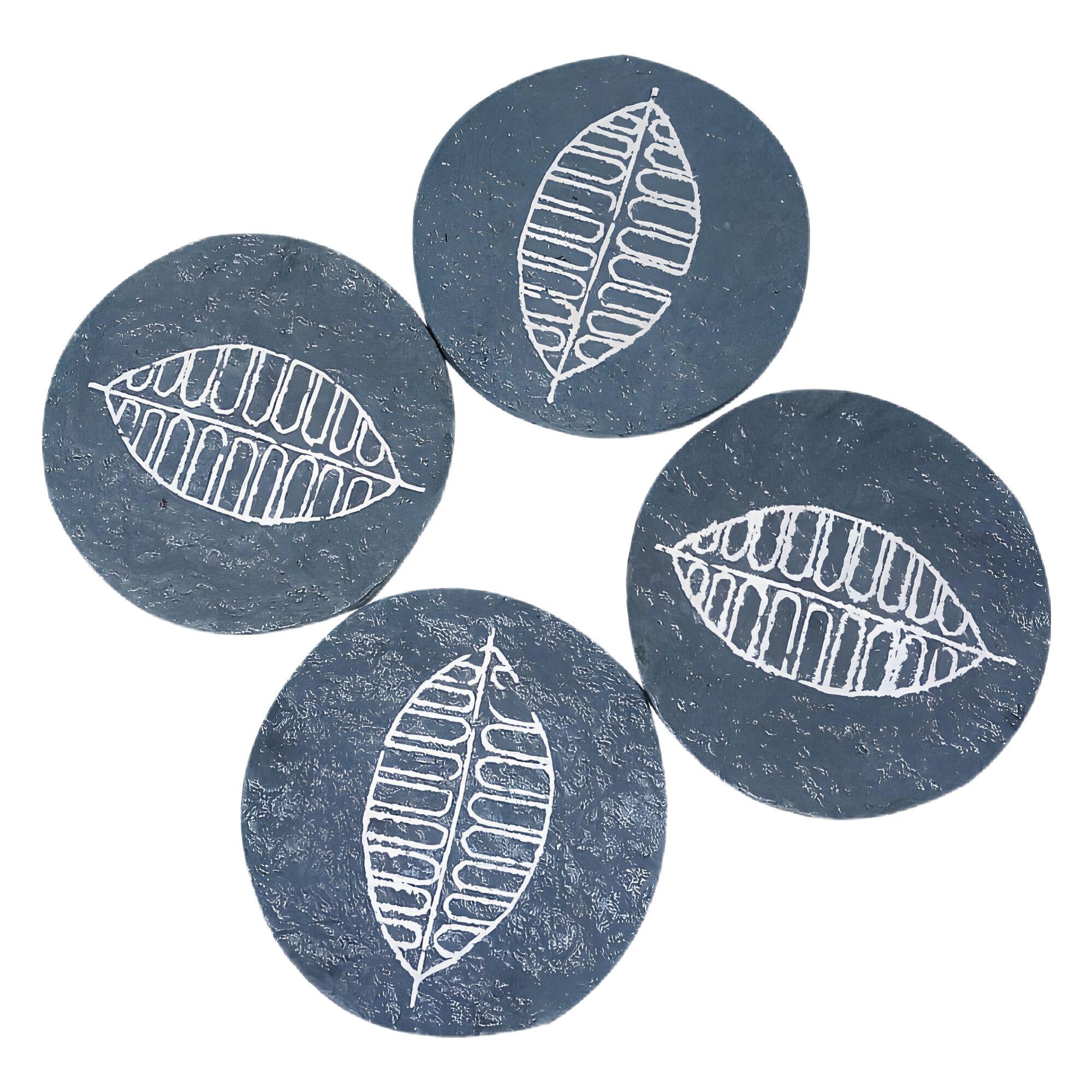 Two each light and dark grey coasters with stalk leaf impression.