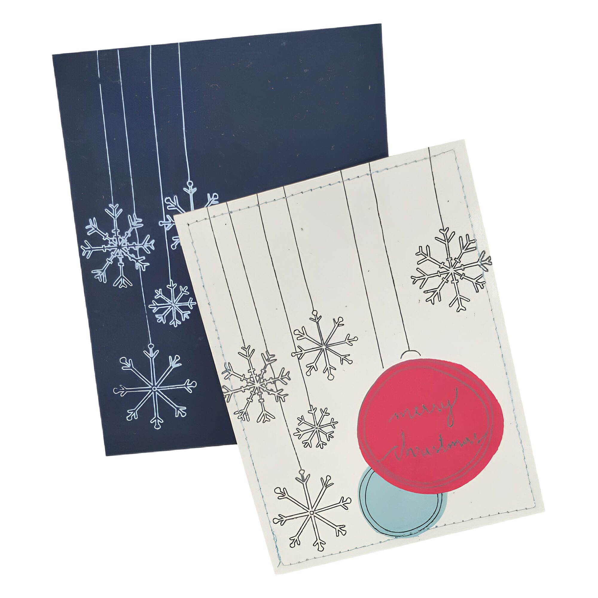 Navy blue envelope, white greeting card