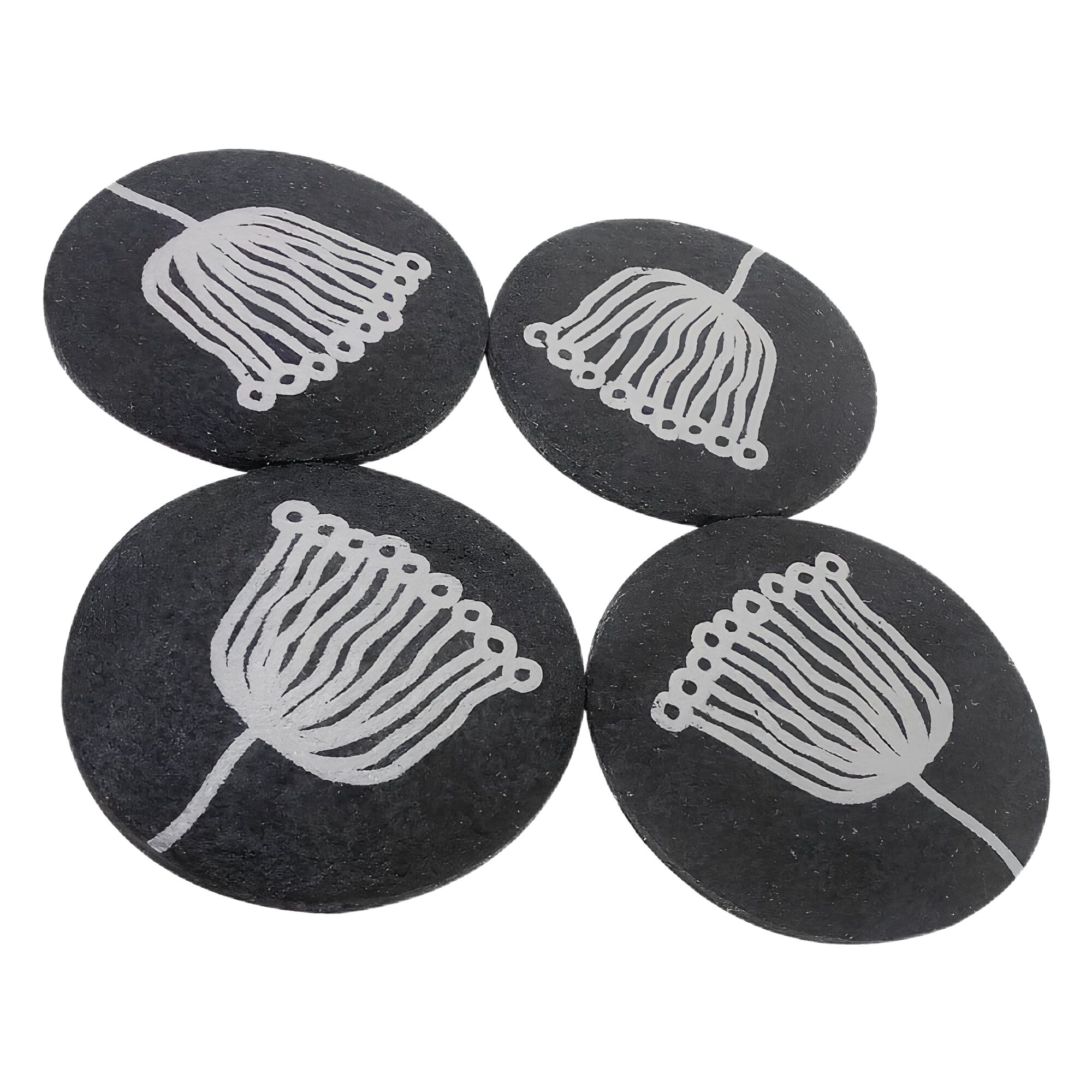 Each dark grey coasters with tree impression.