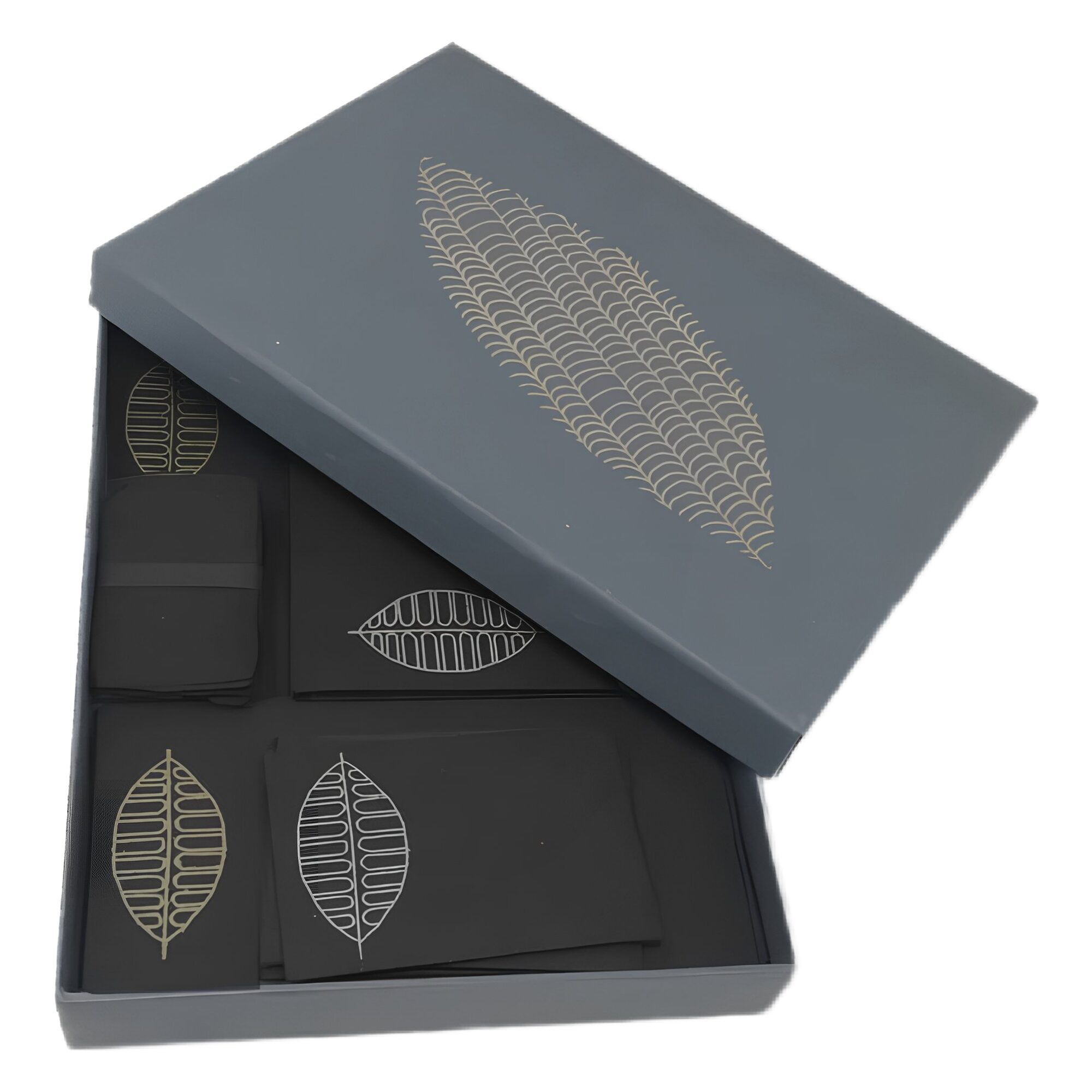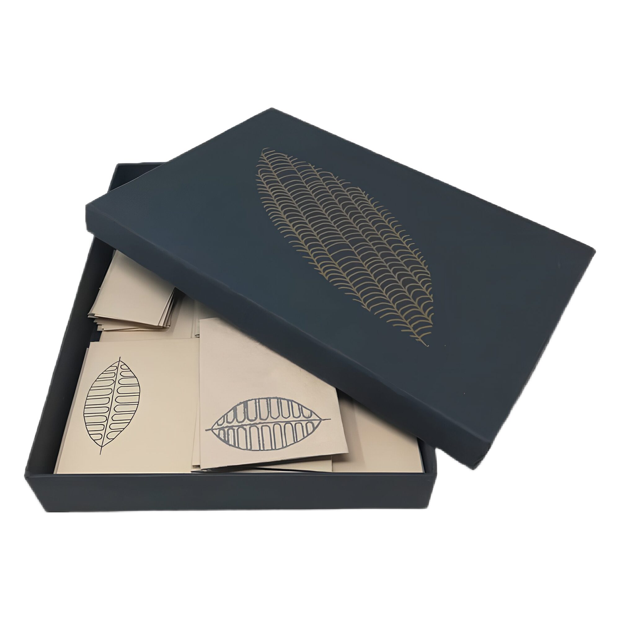 Beautiful handmade stationery sets in a box – grey, off-white autumn leaf