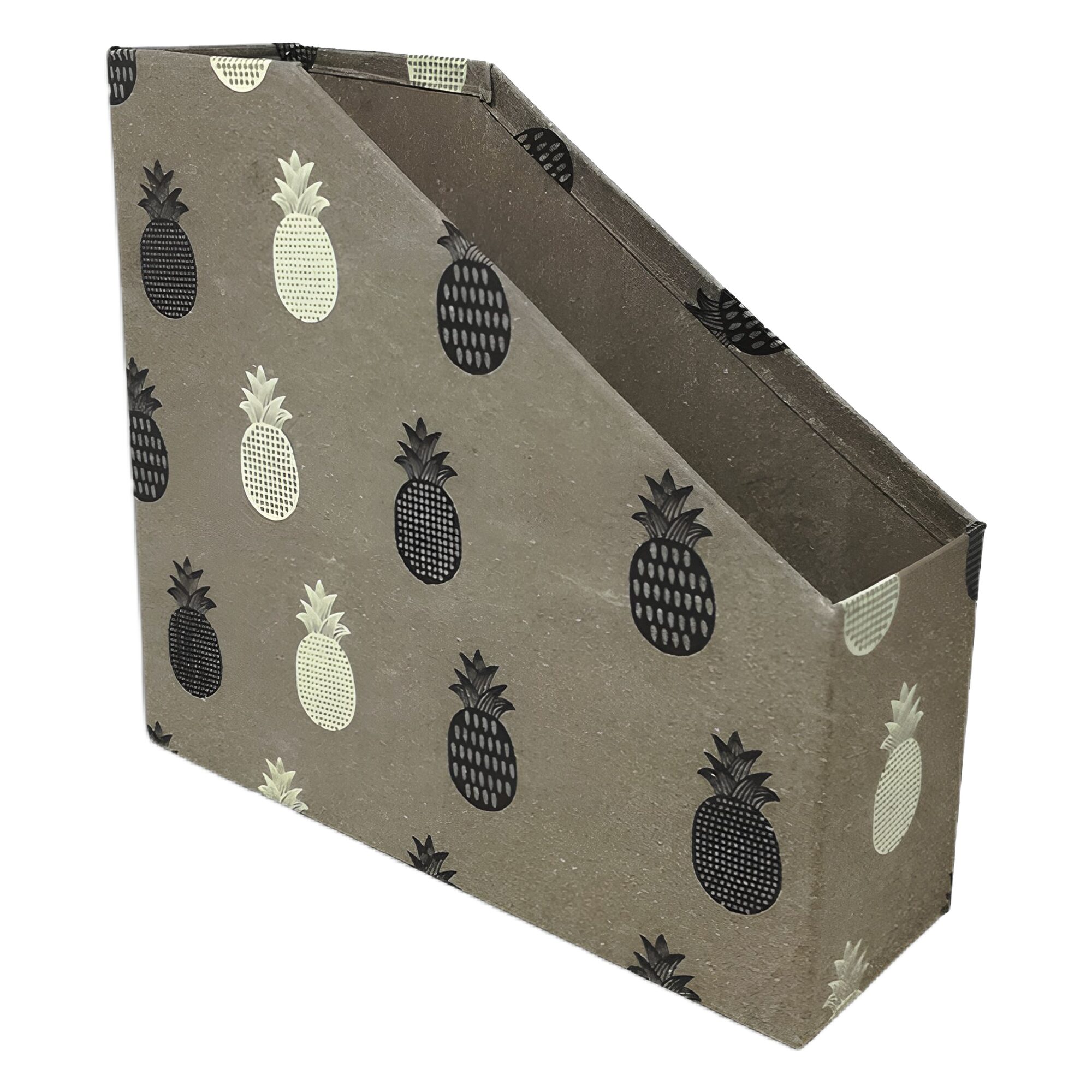 Box file holder for Desk – Linen – Black and cream white small pineapple print