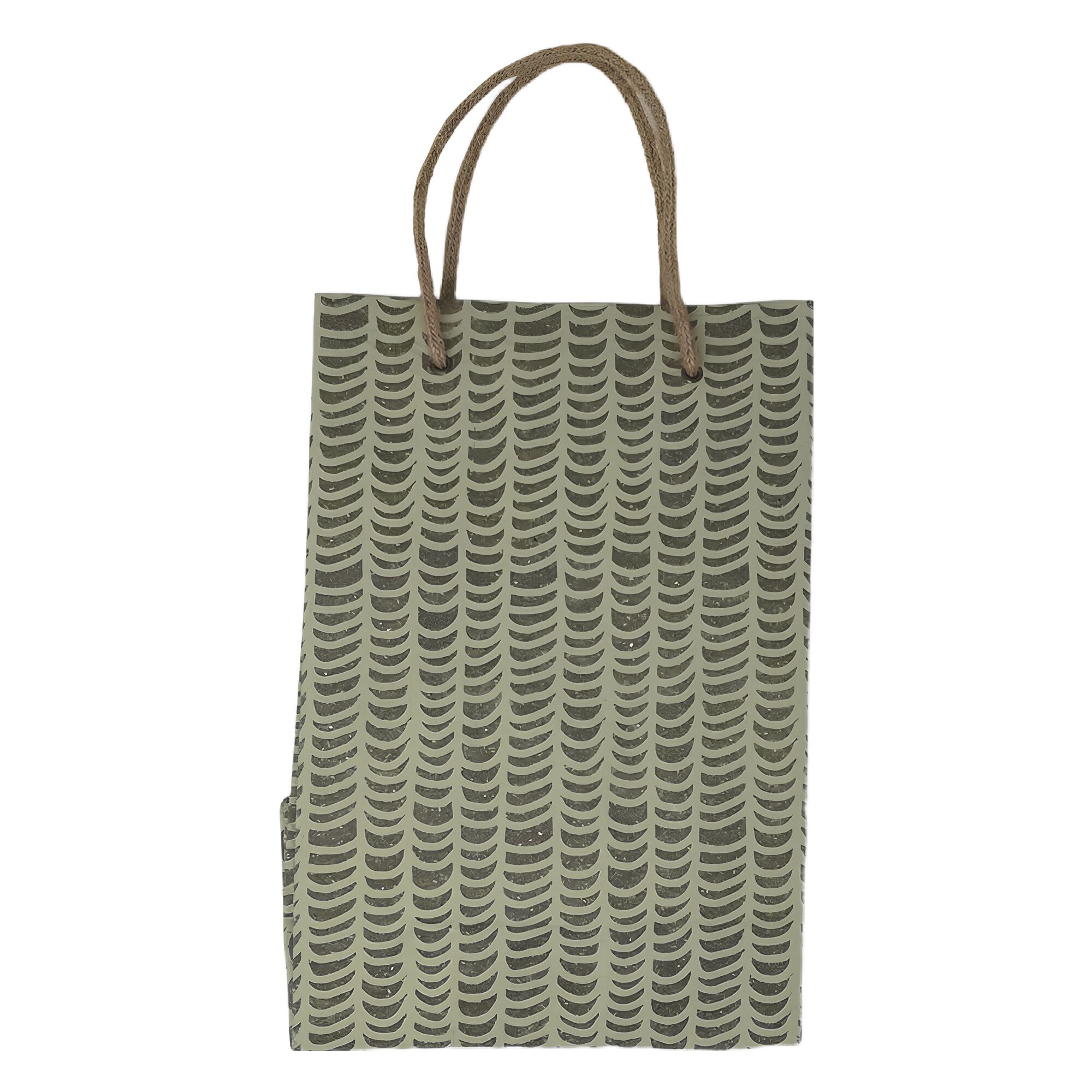 - Carry Bag is with two jute rope handles. Beige waves print. Set of 2.