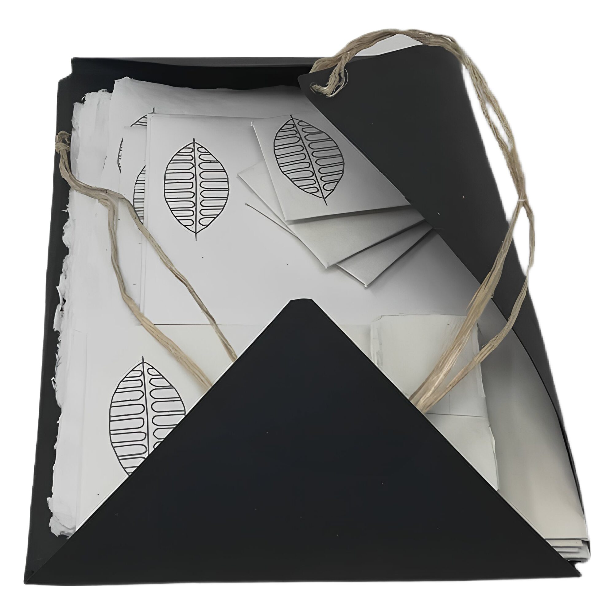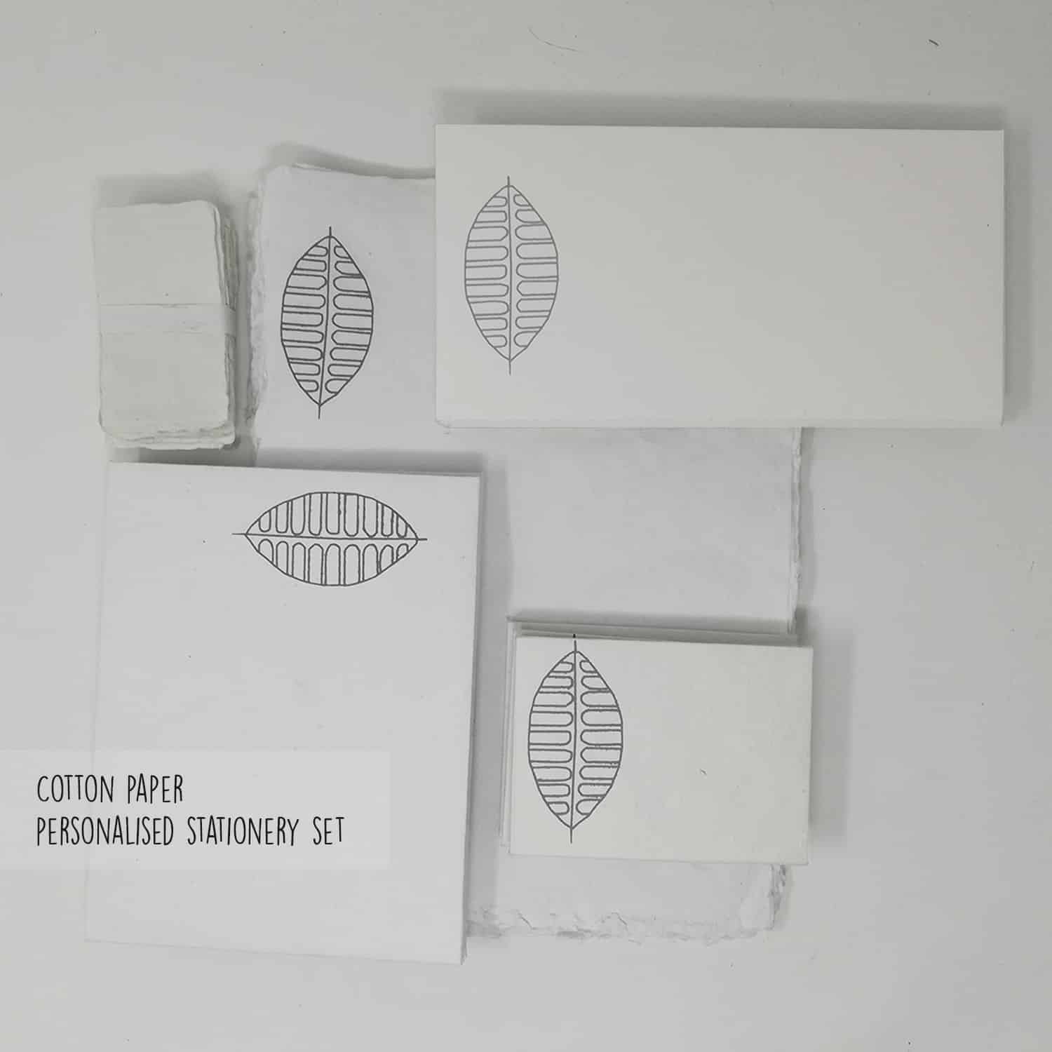 Beautiful stationery gift set in a file – white, grey autumn leaf.