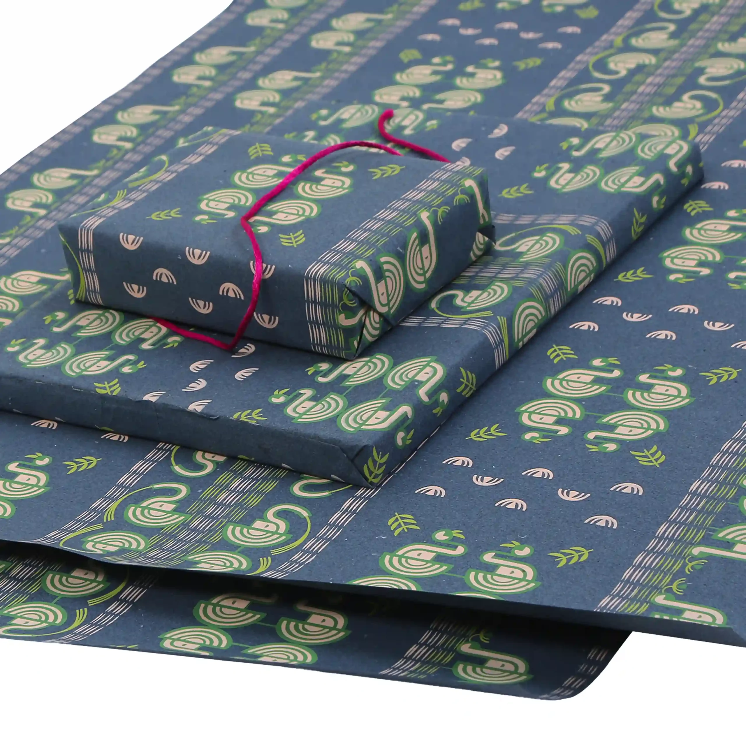Gift Wrap – Denim Blue Paper – Screen Printed Elephant (Set of 2: Medium & Large)