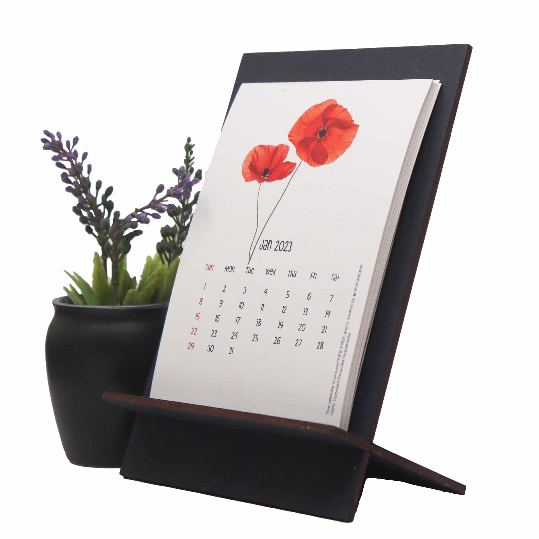 If you like to doodle or take notes, this eco-friendly tree-free calendar is for you! This desk calendar is the perfect size for your home, office, and studio. The detachable stand is easy to fold and makes a great gift to.