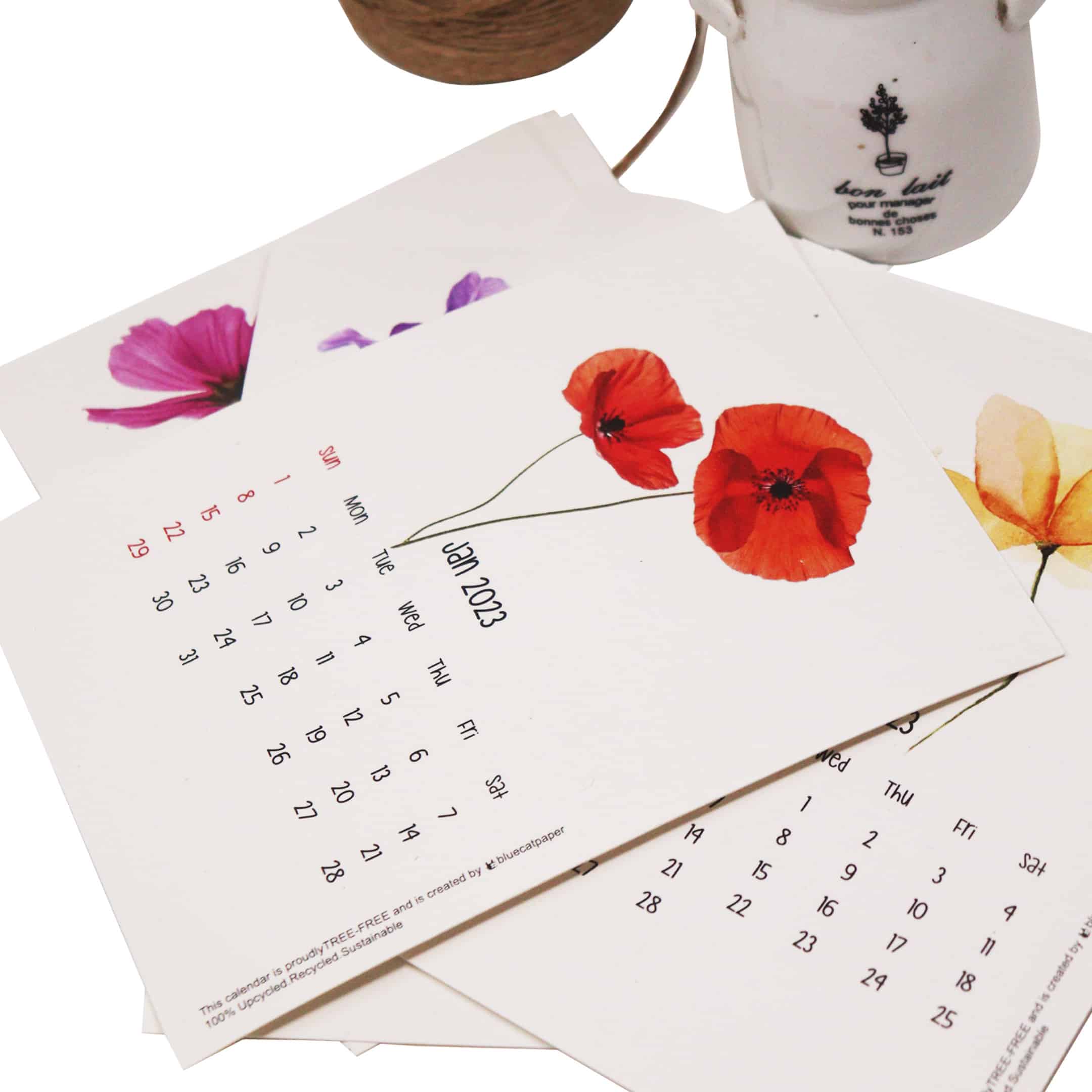 Handmade Designer Calendar 2023 – Tree Free, White Cotton Rag Paper