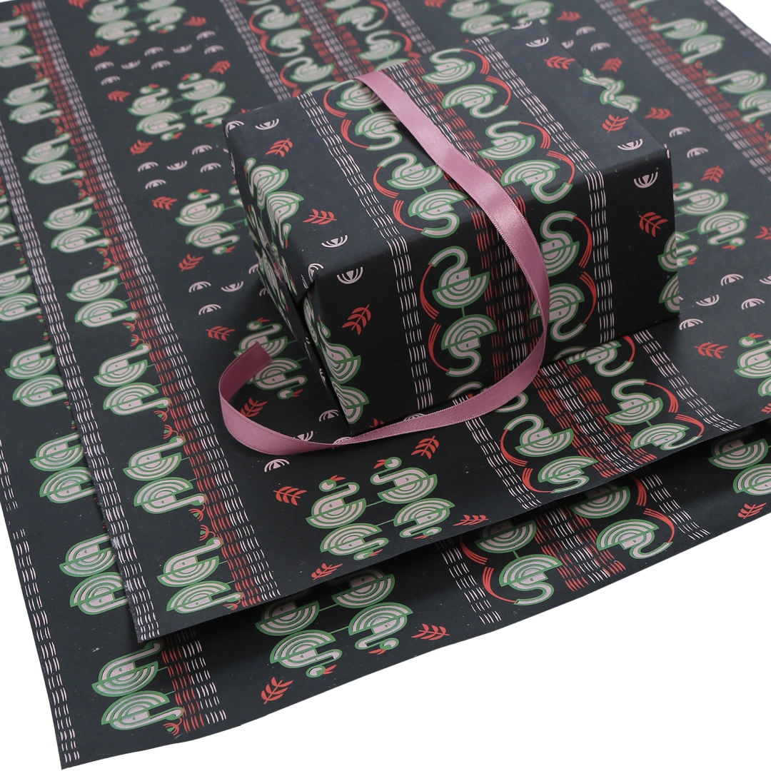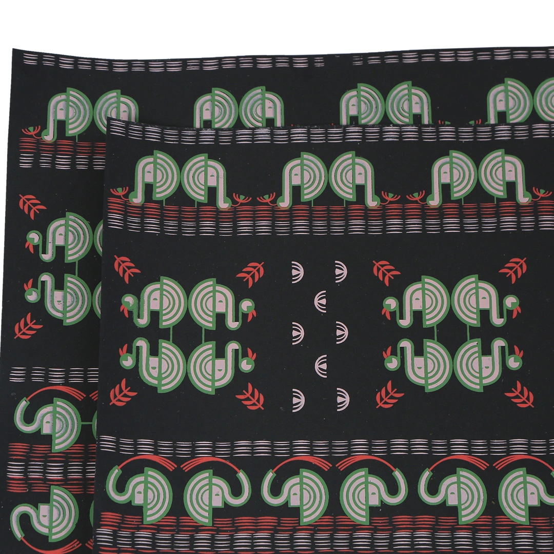 Paper Gift Wrap – Black Cotton Screen-Printed Elephant Design (Set of 2)